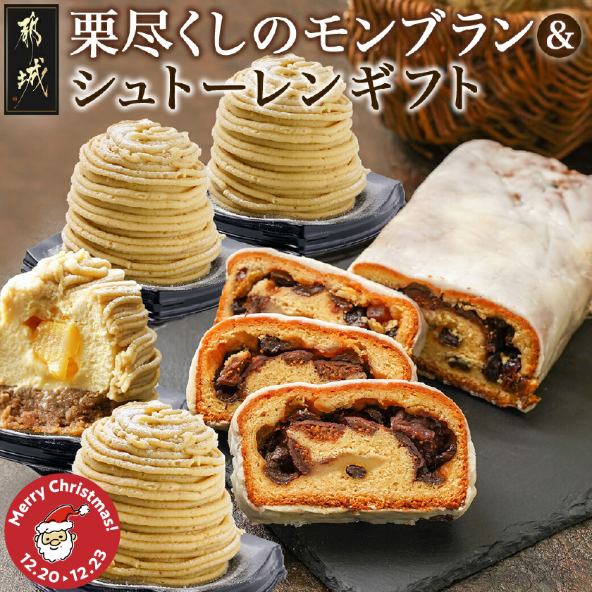ドイツの伝統菓子「シュトーレン」と栗尽くしのモンブランセット。バター生地に洋酒香るドライフルーツを練り込み、クリスマスムードを演出します。