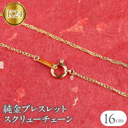 純金 ブレスレット スクリューチェーン 全長16cm K24