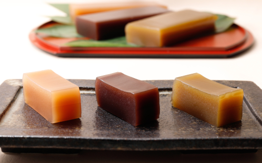 紋別銘菓「渚滑川羊羹」3棹(小豆・挽茶・ワイン各1棹)