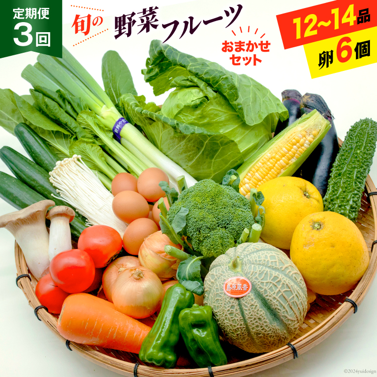 【定期便3回】旬の野菜・フルーツ (12〜14品目)・卵 (6個) おまかせ セット